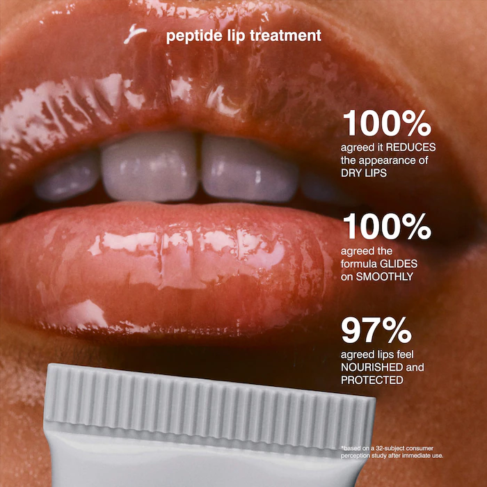 Peptide Lip Treatment en Strawberry Glaze: tratamiento nutritivo con brillo y un delicioso aroma a dona glaseada de fresa.