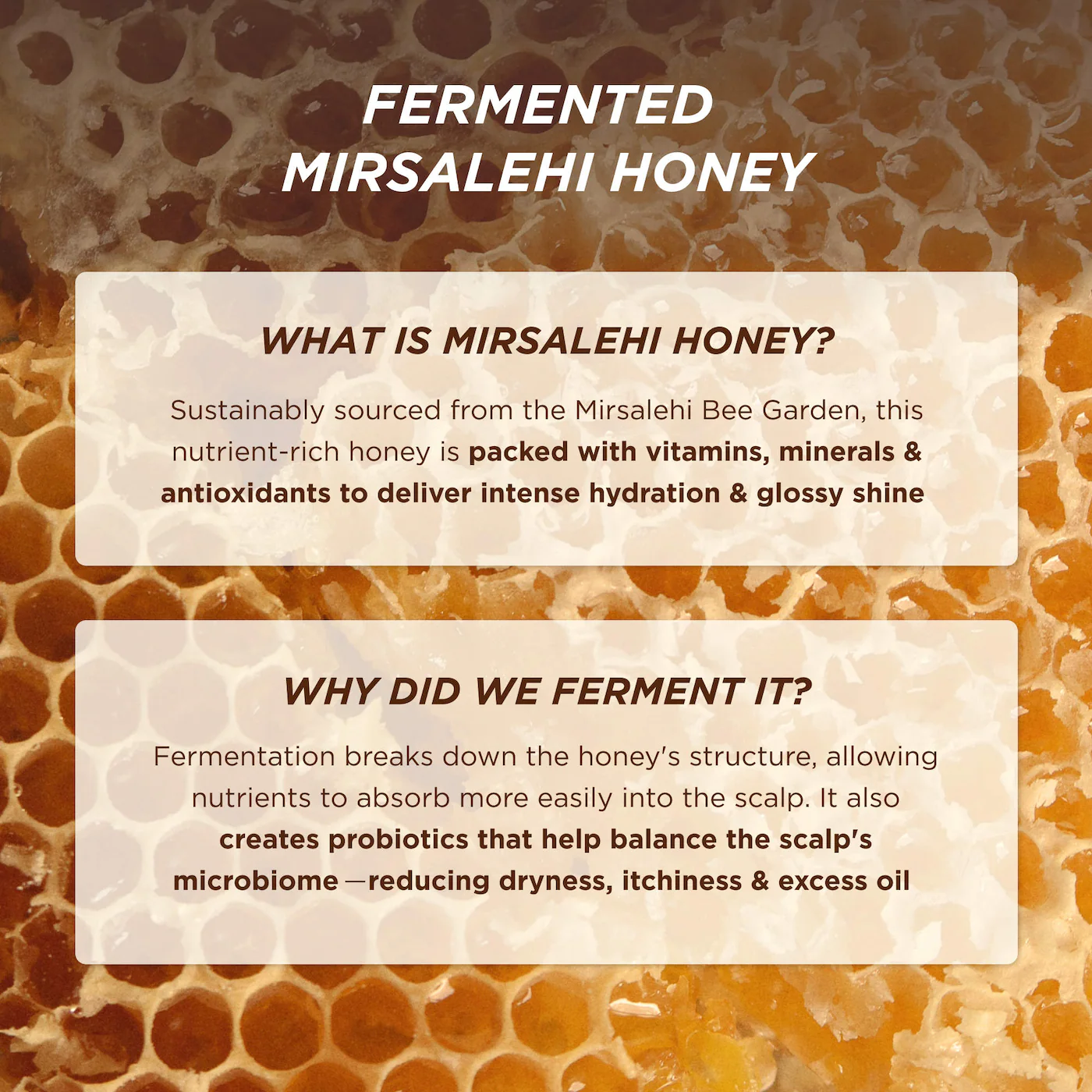 Formulado con miel fermentada Mirsalehi, ceramidas y AHAs, nutre y refuerza cada hebra desde la raíz, dejando el cabello con ese brillo glossy característico de Gisou. 🍯